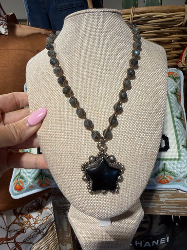 The Black Star & Necklace features a unique, hand-strung design using Labradorite and Onyx. Labradorite is known for its optical phenomena and ...