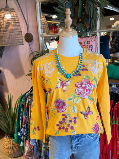 The Maddy Contrast Tee features a golden yellow hue complemented by three-quarter sleeves and waffle texture, enhancing breathability and comfort. ...