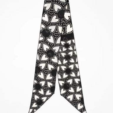 Heart piercingly cute! This special piece is all about the details. Black base with off white hearts sprinkled about over a gorgeous burnout floral...