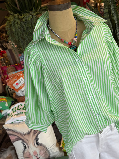 The Lemon Lime Top features a relaxed fit and striped puff sleeves, designed for comfort and style. The lime and green color scheme enhances visual...