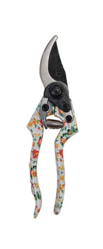 8"L Aluminum & Stainless Steel Garden Pruning Shears w/ Floral Patterned Handle & Blade Protector, Multi Color, 2 Styles