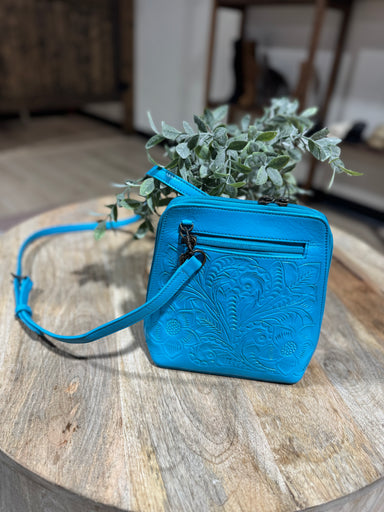 On Sale Kate Leather Crossbody $219.00 | / Custom tooled leather crossbody not only looks amazing but smells devine. Outside pocket and inside pocket.