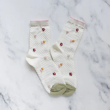 Adult Size 80% Cotton ,10% Spandex, 10%Polyester Machine Wash Introducing our Embossed Flower Casal Socks, designed for ultimate comfort with a tou...