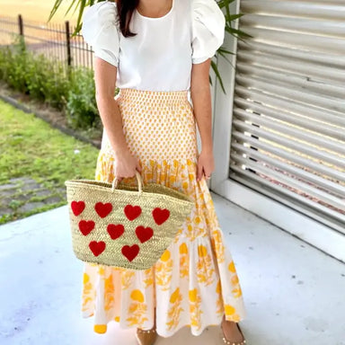 Adorned with bright red crocheted hearts on one side The Market Bag is a French market-style bag. It has been handwoven by artisans in Marrakech, ...
