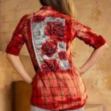 Embrace effortless cool with this Red flannel beach washed top, featuring a subtle rose motif on the back for a touch of bohemian edge. Its relaxe...