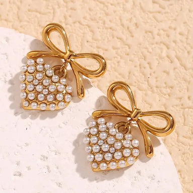 Fall in love with our Heart Bow Pearly Earrings! These beautiful and dainty earrings are crafted with high-quality, stainless steel for a minimalis...