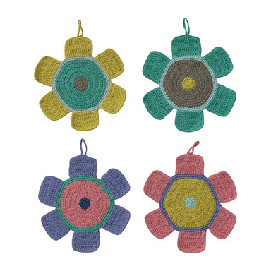 8" Round Cotton Crocheted Flower Shaped Pot Holder, Multi Color, 4 Styles