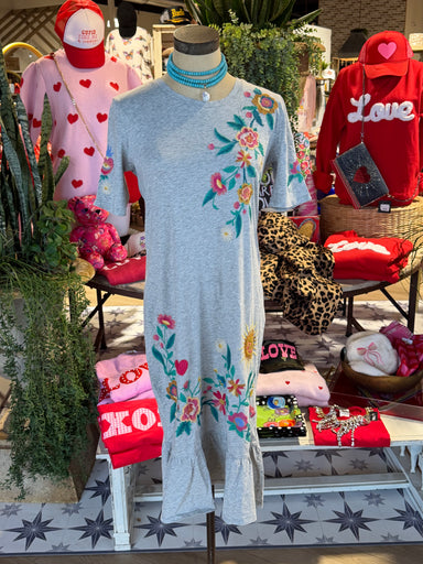 Crafted from breathable 100% cotton, the Ruffle Hem Knit Midi Dress offers a fresh take on a classic t-shirt dress. Featuring a crew neckline a...