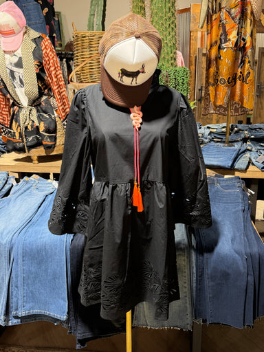 As a product expert, I recommend the Lindsey eyelet black dress for its versatile design, crafted with 100% cotton and stunning eyelet details on t...