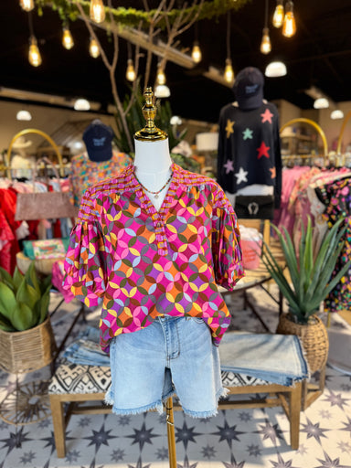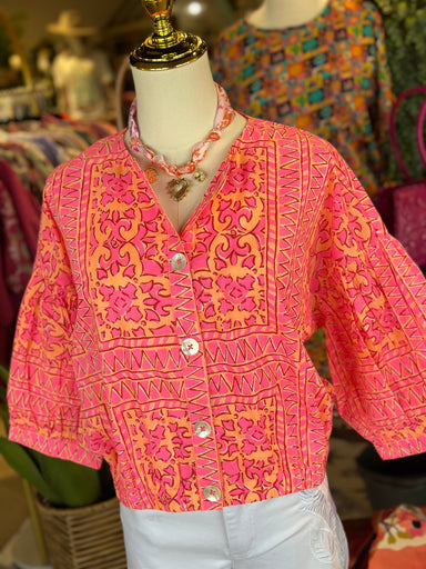 Super fun colorful top! Front button detailing. cotton Circumference: XS 42in S 44in M 46in L 48in XL 50 in