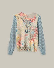 Our Emerta Niki Knit Top. Rounded neck, pullover and long sleeves. Very pretty with our Michelle wide leg pants for a complete, artistic look. Cash...