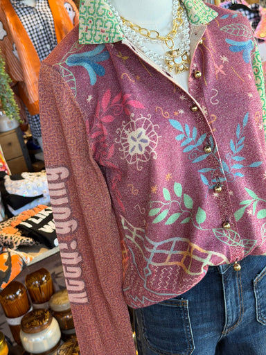 Mid length long sleeve placket dress with side slits in our Twisted Love print. Placket has a V-neck and is long. Placket and pocket flaps are in p...