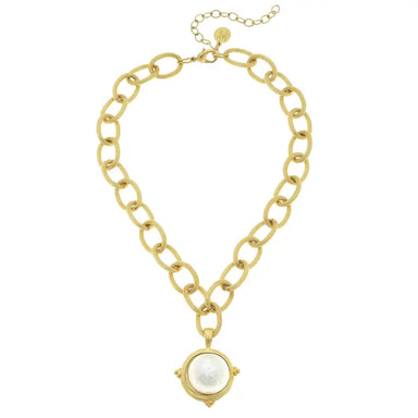 Very designerish 🩷 Nylon cord Pearl Enamel horn Gold plated sterling chain 16-18 inches