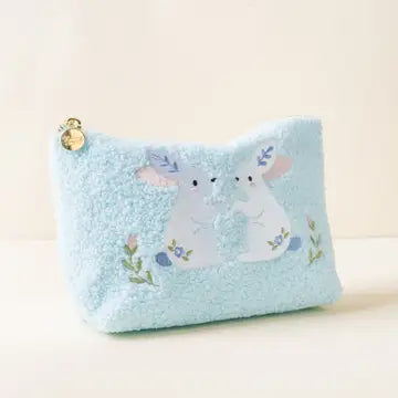 This adorable blue pouch, complete with a fuzzy exterior and sweet bunny graphic, is the ultimate Easter accessory for staying organized in the cut...