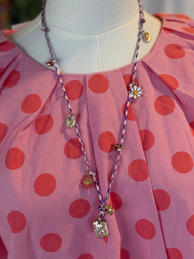 Great denim floral romper with side pockets. Stripe detailing. Cotton