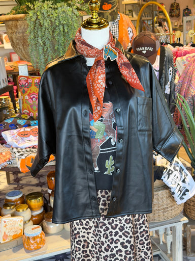 The Eva Faux Leather Top is a luxurious addition to your wardrobe, crafted from a polyester blend for comfort. Available in luscious burgundy or cl...