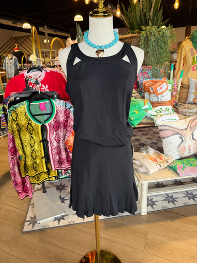 The Black Flounce Skort combines functionality and comfort for athletic wear. Constructed from 92% nylon and 8% spandex, it features built-in short...