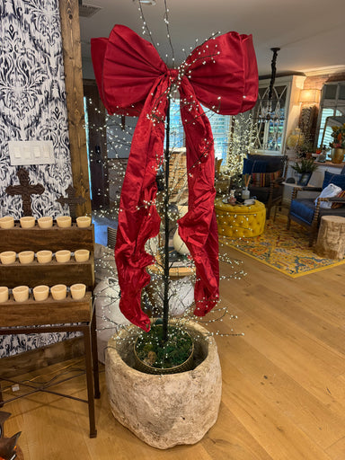 The Christmas Carousel Collection - 35" Red Christmas Bow Tree Topper is a classic holiday highlight designed to crown your Christmas tree with vib...