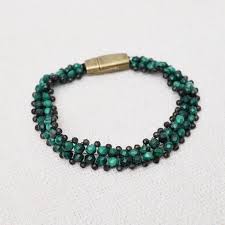 Experience the elegance of malachite and smokey quartz with our hand-woven soft bracelet, complete with a brass magnetic clasp closure. A tasteful ...
