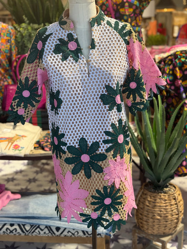 Crochet in pinks and greens. Adorable! Lined except sleeves. The detailing is MUAH! 💋 Slip into the Lulu Dress and shine! This brand new silhouet...