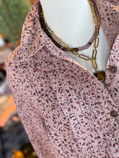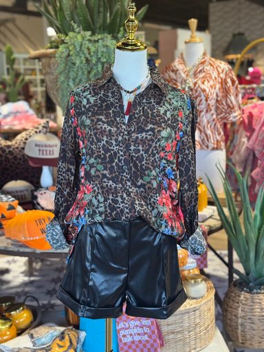 Upgrade your wardrobe with our Alyssa Leopard Top. This stylish button-down top features a trendy leopard and floral print that will keep you on-tr...