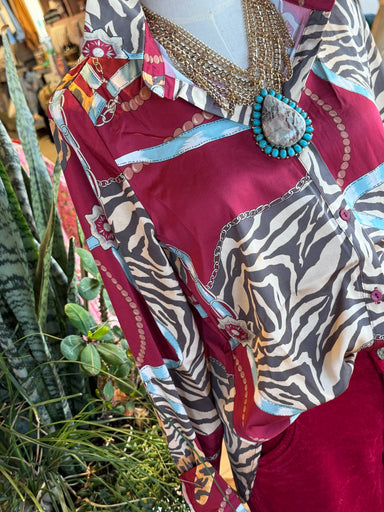 Expertly crafted from the finest silk, the Daria Silk Blouse exudes luxury and sophistication. Its unique design features charming stars and horses...