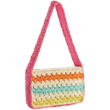 Polyester and Lurex; Single Shoulder Strap; Top Zip Closure. Say Hello To The Luna Crochet Shoulder Bag – A Vibrant and Effortlessly Chic Accessory...