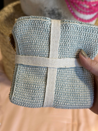 10 in x 10 in dish cloth. Pack of 3 recycled plastic bottles pics shown from left to right