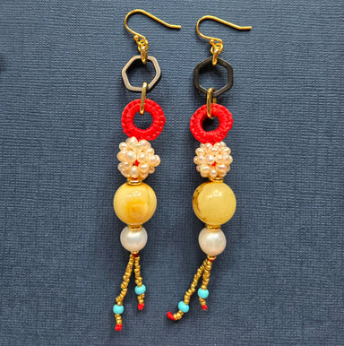 $78.00| /Ancient Chinese Amber ball Pearls Brass Gold plated sterling hooks 4.5 inches