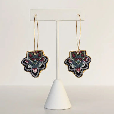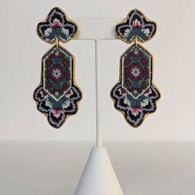 The Jackie Drop Earring was made using vintage fabric from an estate sale in San Antonio, TX. Each piece was handsewn, hand cut, and hand painted a...