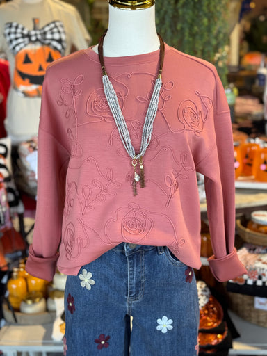 Introducing the Shayla Sweatshirt, a must-have for your wardrobe. Made with a soft scuba fabric, this long sleeve top is designed for ultimate comf...