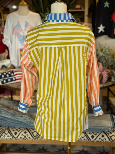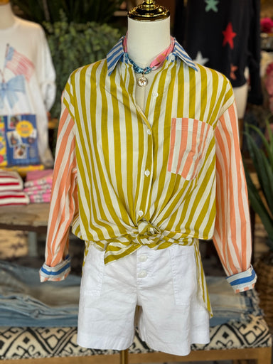 The Maryland Stripe Top is a stylish addition to any wardrobe. Made from 100% cotton, this top features dolman sleeves, a button-down design, and a...
