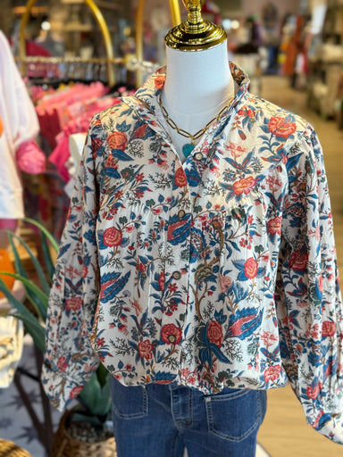 Maya Mae is so cute! Cotton floral pattern that pairs well with denim or white.  small- 40in medium- 42in large- 45in