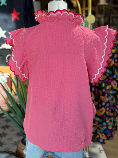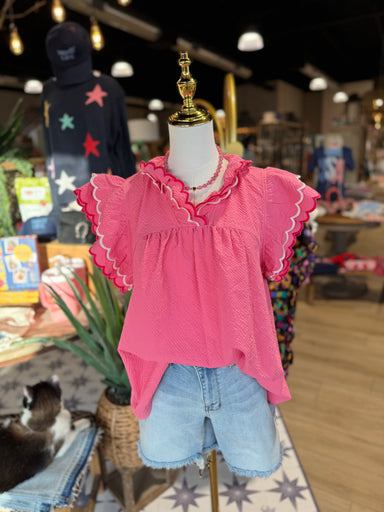 Introducing the Paityn Top - a chic and stylish addition to your wardrobe. This top features delicate textured embroidery and feminine fluttered sl...