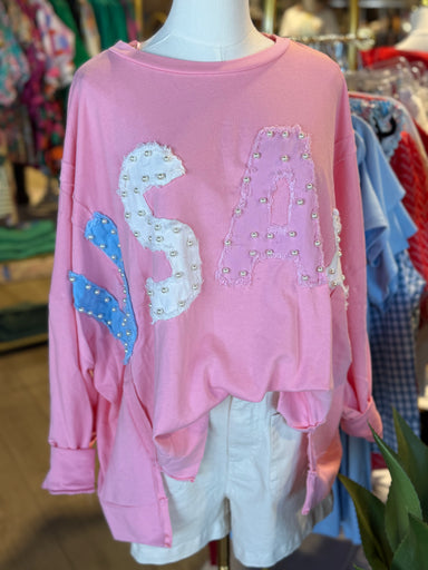 On Sale USA Outfit- 2 Colors*** from $39.00 | / 2 colors available Oversized sweatshirt with USA and shorts gingham pull on. Preorder