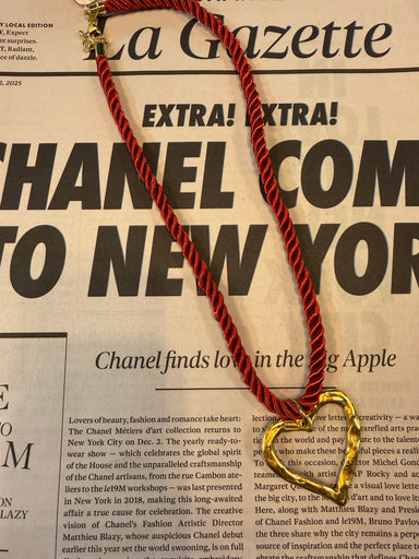 Made from a luxurious crimson silk cord, this necklace features a stunning gold heart pendant. Exude elegance and sophistication with this timeless...