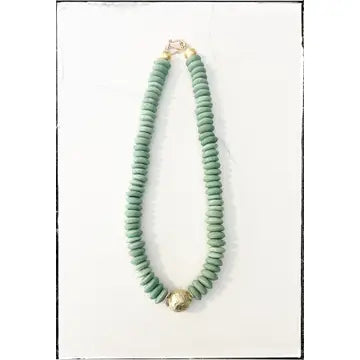 Green Earth Recycled Glass Short Necklace Brass Ball Pendant • Handmade item in a clean, safe environment • Bead material- Glass & Brass beads...