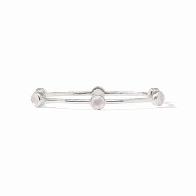 Pure silver plate (tarnish-free), imported glass Inner circumference: 8 inches (medium), Width: 0.3 inches Julie Vos hallmark