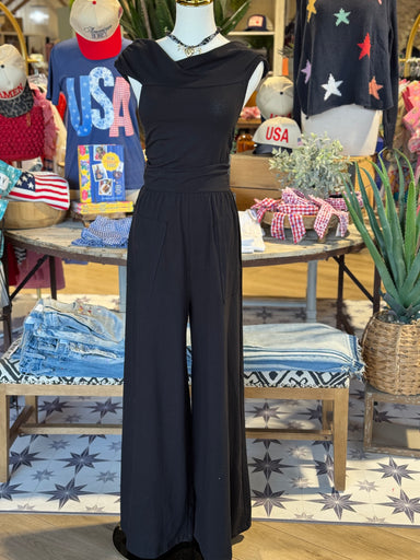 Elevate your style with our Midnight Glam Jumpsuit. Featuring a boat neckline in the back and pockets for convenience, this jumpsuit offers a uniqu...
