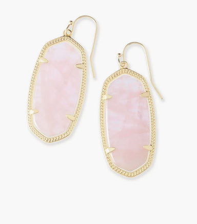 A best-selling icon designed after our signature statement shape, the Elle Gold Drop Earrings in Rose Quartz are inlaid with a genuine custom-cut s...