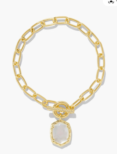 If you’re looking to shake up your bracelet stack, look no further than the Daphne Gold Link and Chain Bracelet in Ivory Mother-of-Pearl. With its...