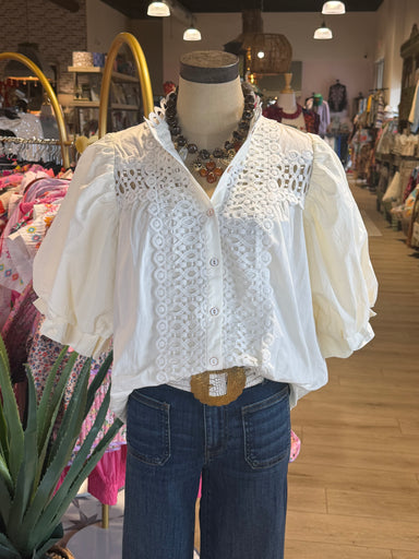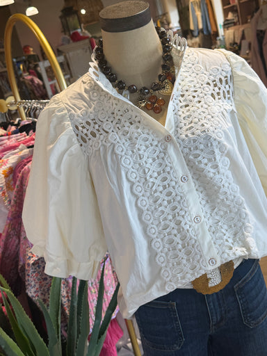Expertly designed for style and comfort, the Alicia Top features a cream button down design with delicate lace detailing along the collar and down ...