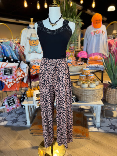 Introducing the Lindsey Leopard Pants - the perfect blend of style and comfort. These leopard print pants feature convenient front pockets with a z...