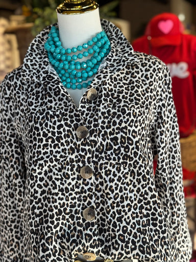 The Susie Leopard Top features a button-down collar and oversized buttons, enhancing its sophisticated design. Made from a rayon blend, it offers b...