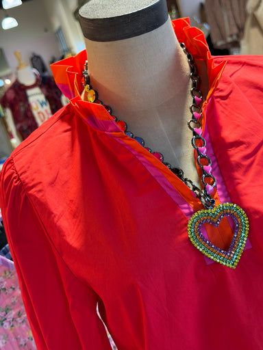 Introducing the Evelyn Color Block Top - a versatile addition to any wardrobe. This top features a bold combination of red and pink colors, complem...