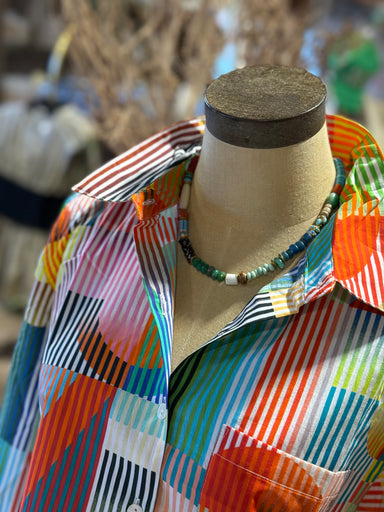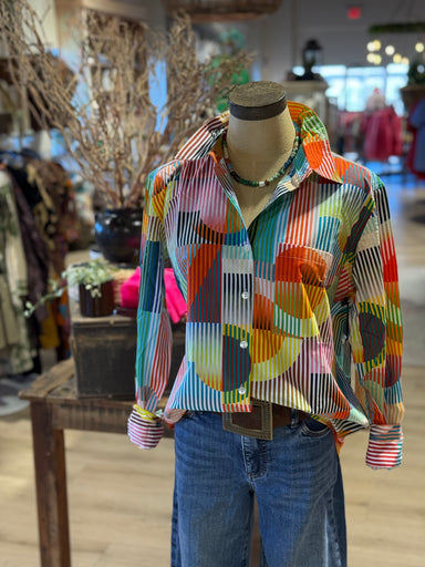 The Sheila Ann Top is a must-have for your summer wardrobe. With its vibrant multi-colorblock stripes and stylish puff sleeves, it exudes total sum...