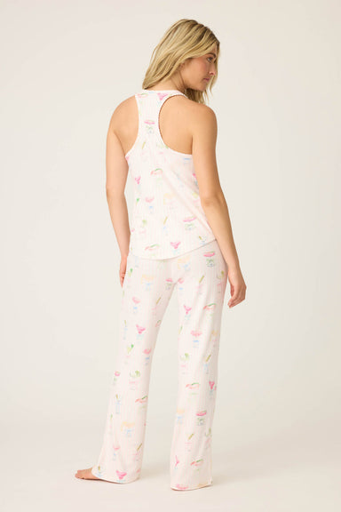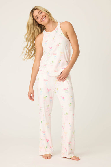toast to bedtime, this two-piece PJ set features a racerback tank and full-length pant, both crafted from double-brushed pointelle with an allover ...