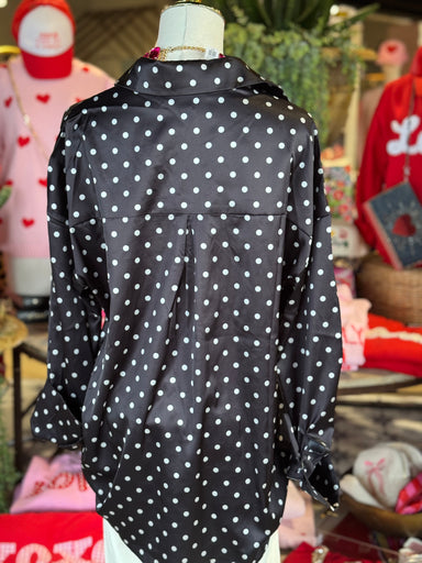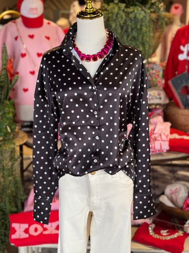 The Lori Lynn Top features a sophisticated black fabric adorned with white polka dots, enhancing visual appeal. Constructed from 100% polyester, it...