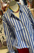 This top features a blue and white striped woven cotton fabric and a button down design. Perfect for a casual yet sophisticated look, this top offers a classic and timeless style. Made with quality materials, it is durable and comfortable for all-day wear.