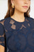 The Carmen Lace Top is the epitome of luxury and versatility. Made with a cotton blend, this navy top features intricate lace detailing that adds a touch of elegance to any outfit. Lined for comfort, it's the perfect choice for any occasion.